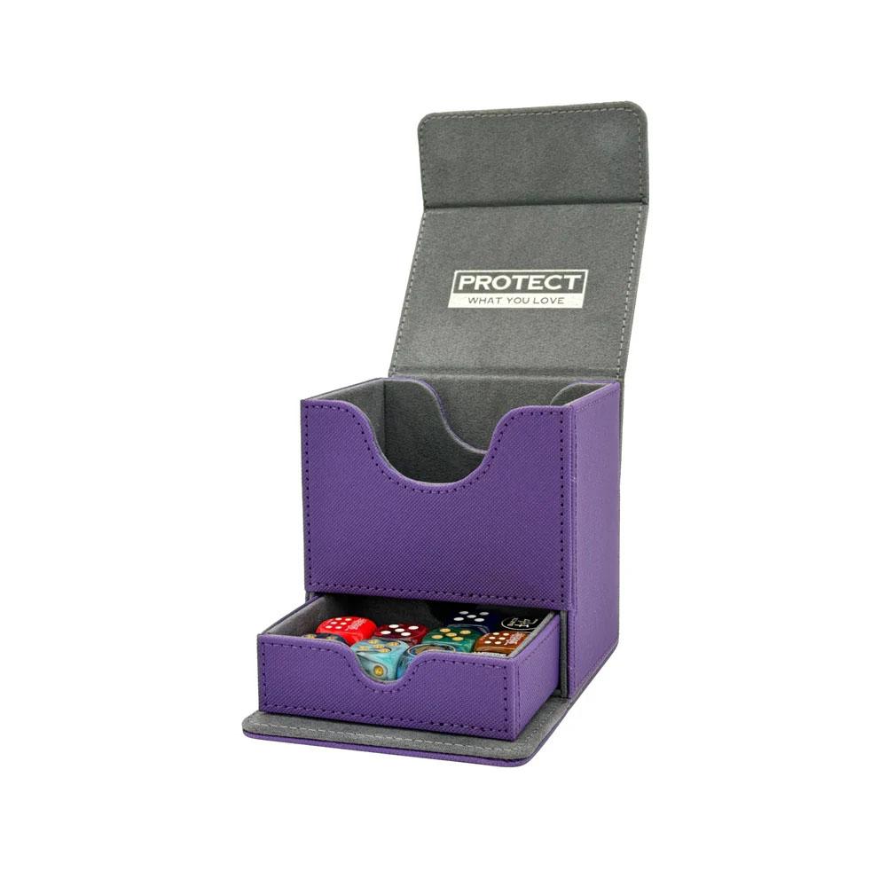 Mit robustem PU-Leder, bietet Platz für mehr als 100 Sammelkarten und verfügt über ein Innenleben aus Mikrofaser für eleganten Schutz. Durch den extra starken Magnetverschluss wird Ihre Sammelkarten Sammlung sicher gehalten. Zusätzlich verfügt die Deckbox über ein Fach für Würfel.