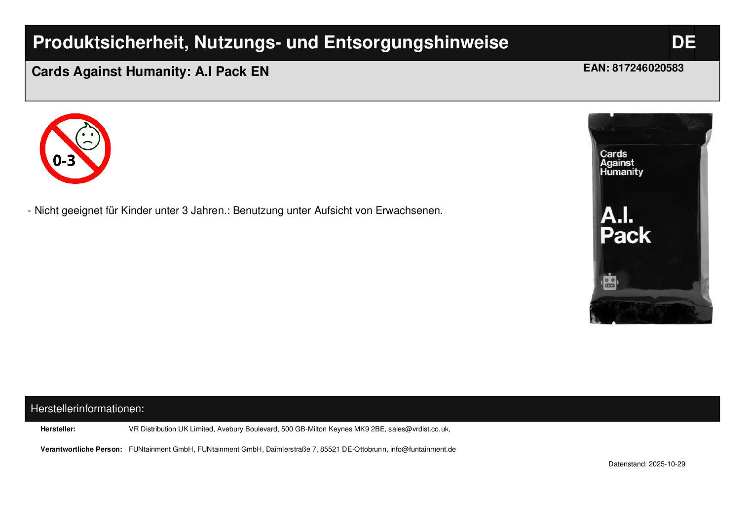 | Titel: | Cards Against Humanity: A.I Pack EN |