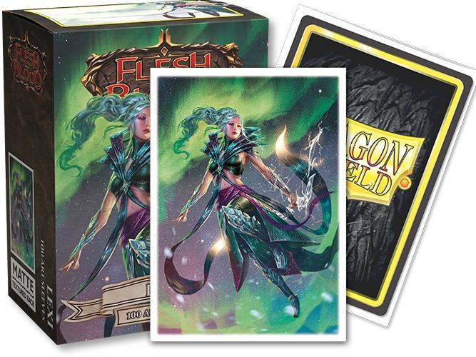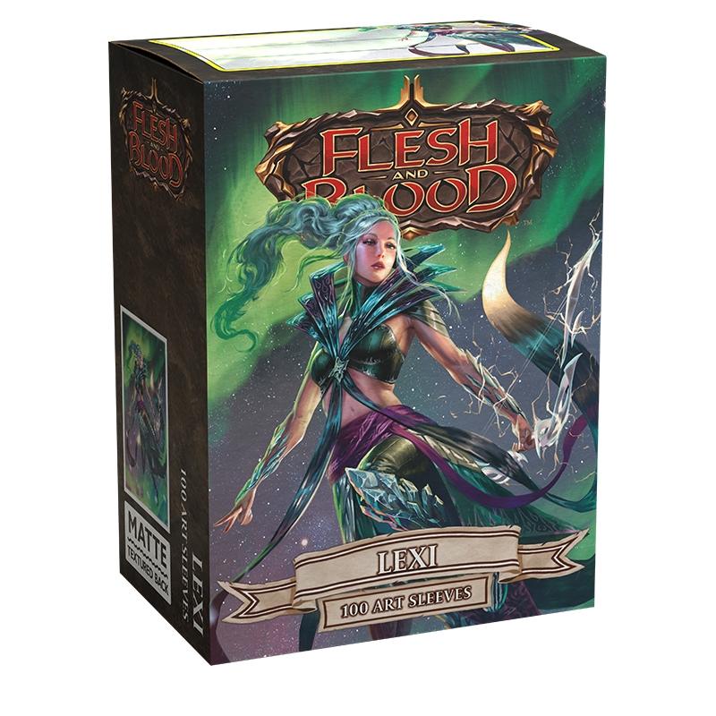 Dragon Shield Matte Art Sleeves have artwork which is printed directly onto the sleeve and do not peel or split. Matte Art sleeves combine the textured Matte back with stunning artwork while maintaining excellent handling capabilities. A perfect mix of durability and shuffle-ability. Each pack comes with 100 sleeves, more than enough for your Classic Constructed deck. The sturdy cardboard box fits 75+ single sleeved cards or 65+ double sleeved cards, perfect for storing a blitz deck. Every box has a label at the top of the box for personalization. Flesh and Blood logos and images & Legend Story Studios. Licensed for use by Arcane Tinmen.| Titel: | Dragon Shield Matte Art Sleeves - Flesh and Blood Lexi (100 Sleeves) |