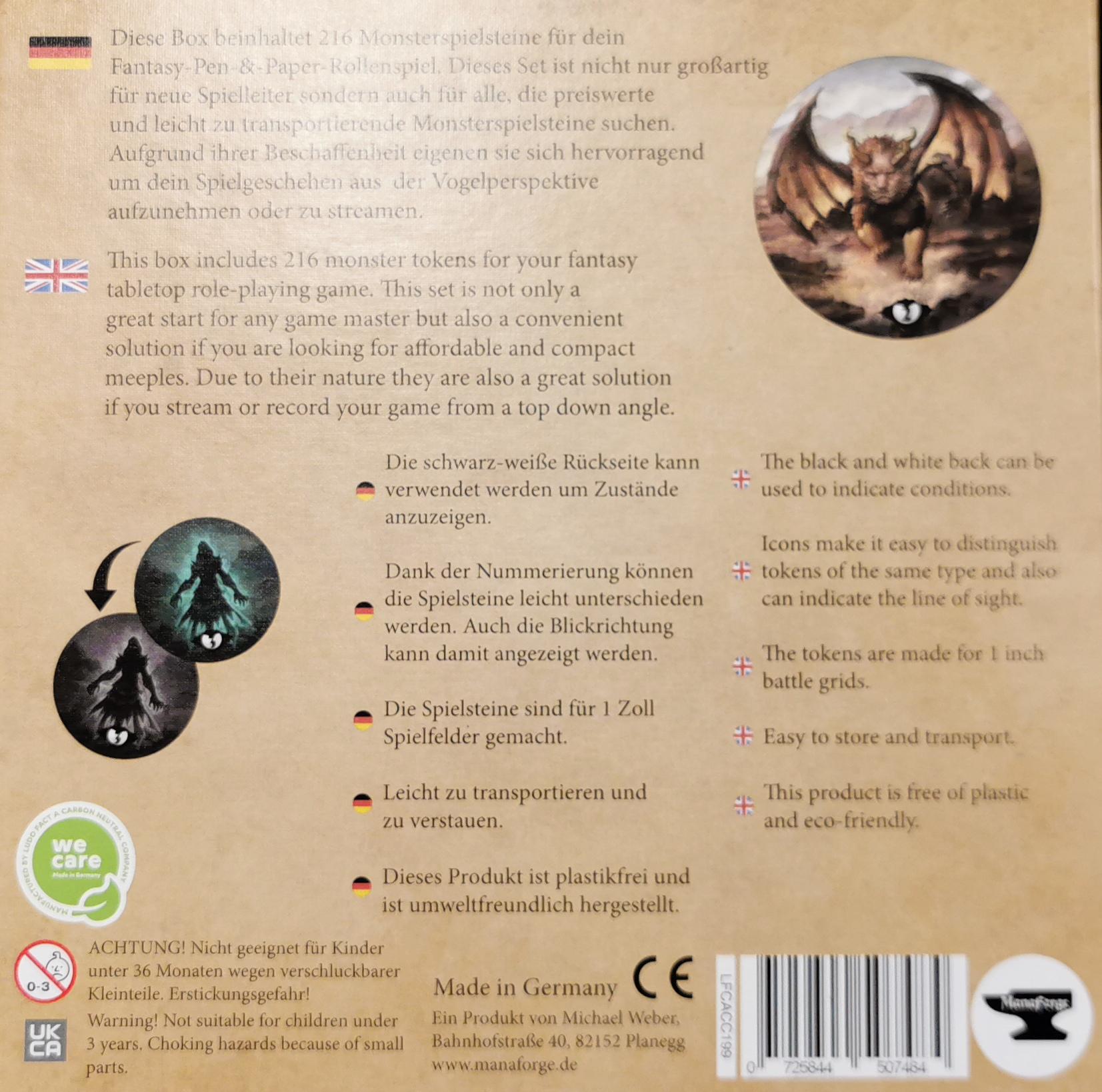 Diese Box beinhaltet 216 Monsterspielsteine für dein Fantasy Pen-&-Paper-Rollenspiel. Dieses Set ist nicht nur großartig für neue Spielleiter sondern auch für alle, die preiswerte und leicht zu transportierende Monsterspielsteine suchen. Aufgrund ihrer Beschaffenheit eignen sie sich hervorragend um dein Spiel geschehen aus der Vogelperspektive aufzunehmen oder zu streamen.