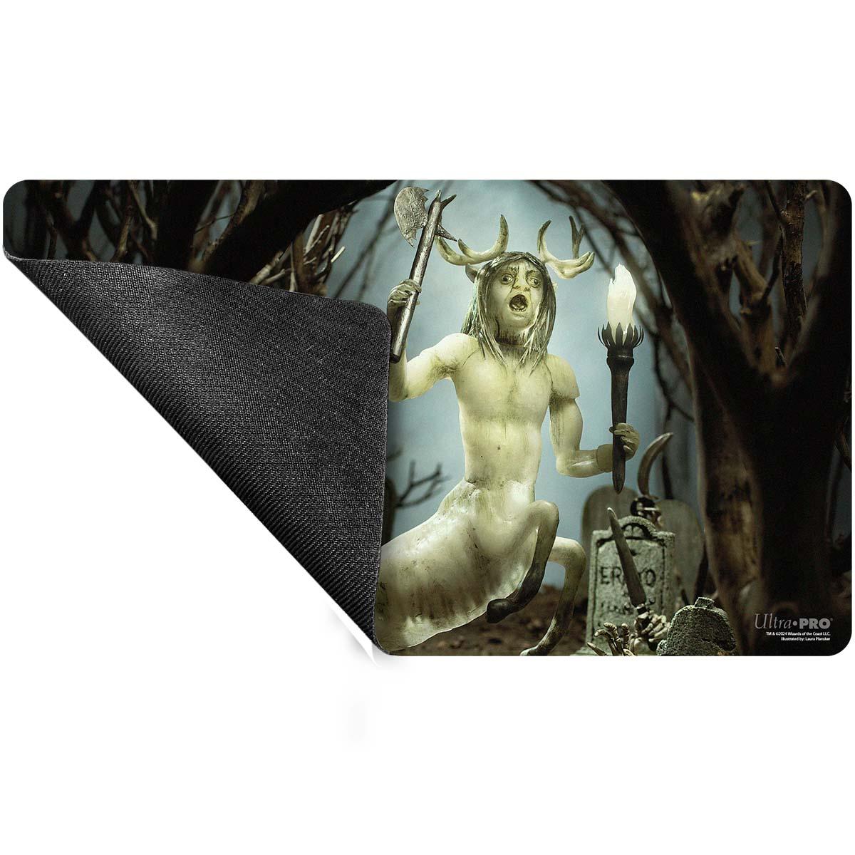 Playmats featuring popular Magic: The Gathering artwork. Made with a soft fabric top to reduce damage to cards during play and a non-slip rubber backing to keep the playmat from shifting during use, playmats enhance the gameplay experience. With dimensions of approximately 24 in. x 13.5 in., a playmat also makes an excellent oversize mousepad for home or office.