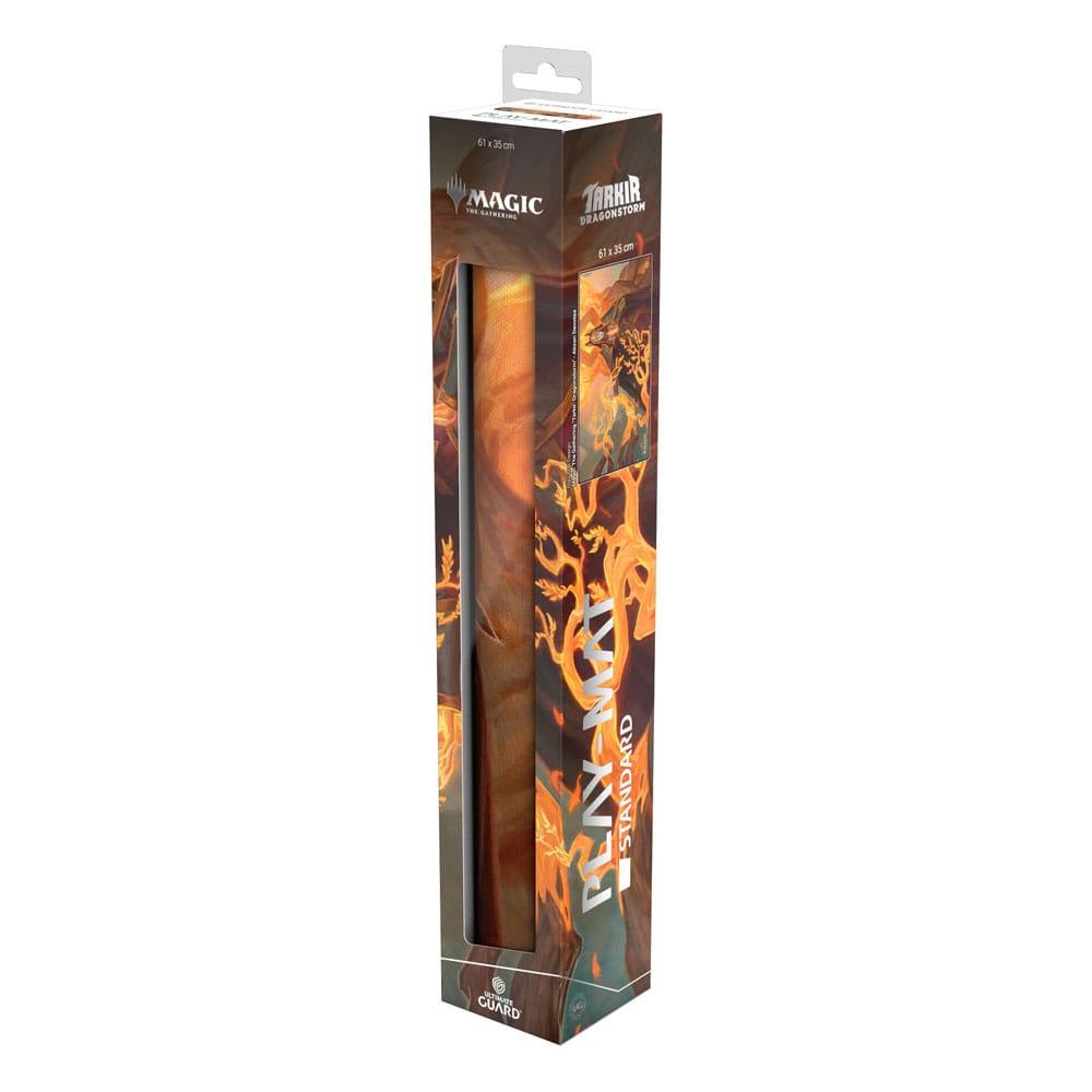 The 61x35cm Play-Mat protects cards and sleeves while playing and improves the gaming experience thanks to its anti-slip underside, while the stitched edges guarantee an even longer service life. The top side of the Play-Mat is printed with officially licensed artworks from Magic: The Gathering's upcoming set "Tarkir: Dragonstorm".