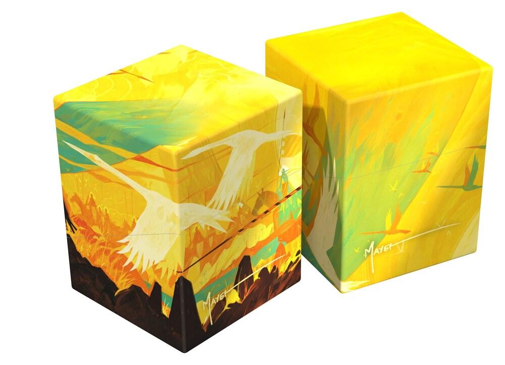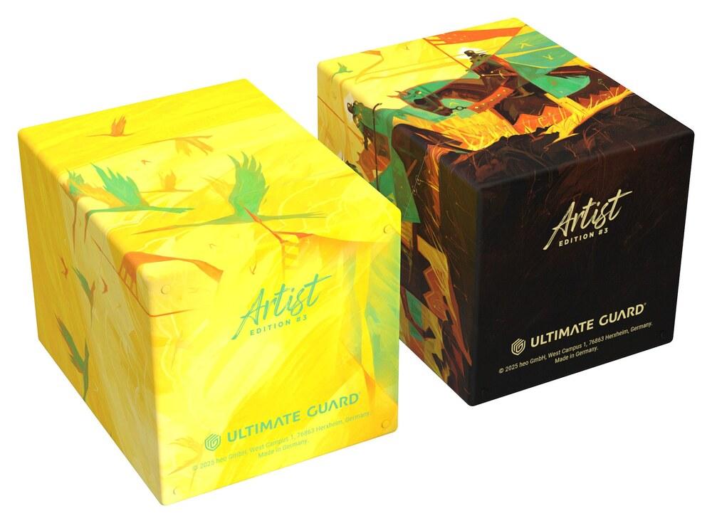 Ultimate Guards RTE Boulder 100+ sind stabile und zuverlässige Deck-Boxen, die in Deutschland aus 78?Prozent erneuerbaren Materialien hergestellt werden. Trotz ihres sicheren Verschlusses lassen sie sich angenehm leicht öffnen und bieten Platz für 100 doppelt gesleevte Karten in Hüllen von Ultimate Guard*, womit sie die perfekten Deck-Boxen für Sammelkartenspiele wie Magic: The Gathering, Pokémon, Lorcana, Flesh and Blood, Yu-Gi-Oh! und One Piece sind. Die Artist Edition #3 von Magic: The Gathering-Künstler Dominik Mayer enthält zwei RTE Boulder 100+, die miteinander kombiniert das vollständige Artwork zeigen.