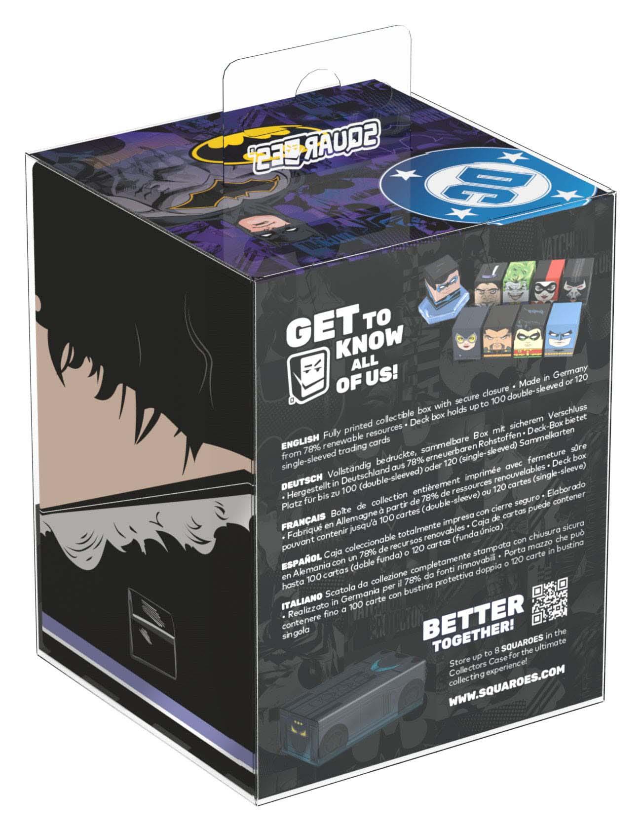 Sammelbare Box zur Aufbewahrung von TCG-Decks, Tabletop-Zubehör und/oder Sammlerstücken. Der The Penguin Squaroe aus der Batman: Gotham City-Edition bietet als Deck-Box benutzt Platz für bis zu 100 Spielkarten in doppelter Schutzhülle. Squaroes werden aus 78% erneuerbaren Rohstoffen hergestellt und passen perfekt in das separat erhältliche Collectors Case.