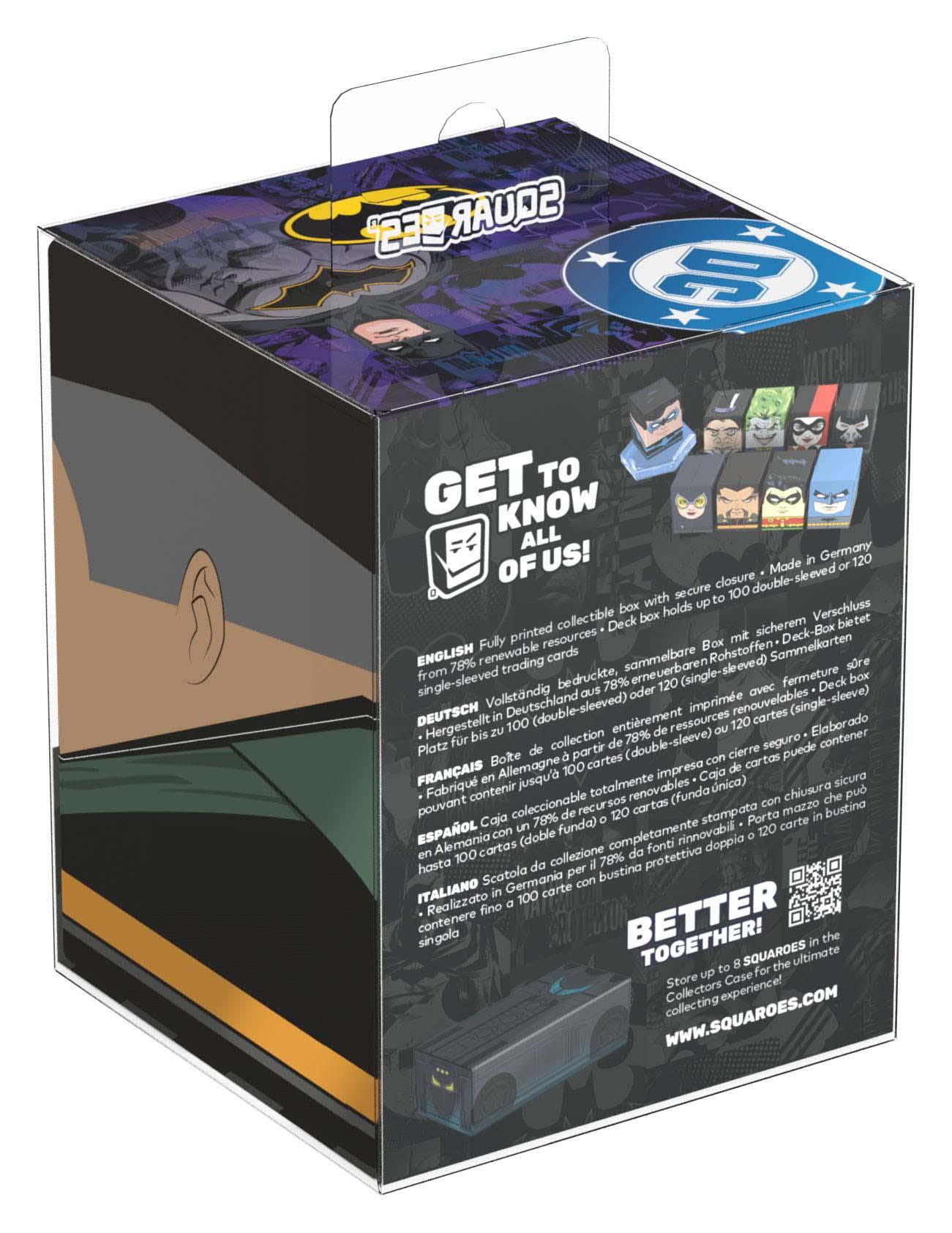 Sammelbare Box zur Aufbewahrung von TCG-Decks, Tabletop-Zubehör und/oder Sammlerstücken. Der Ra's al Ghul Squaroe aus der Batman: Gotham City-Edition bietet als Deck-Box benutzt Platz für bis zu 100 Spielkarten in doppelter Schutzhülle. Squaroes werden aus 78% erneuerbaren Rohstoffen hergestellt und passen perfekt in das separat erhältliche Collectors Case.