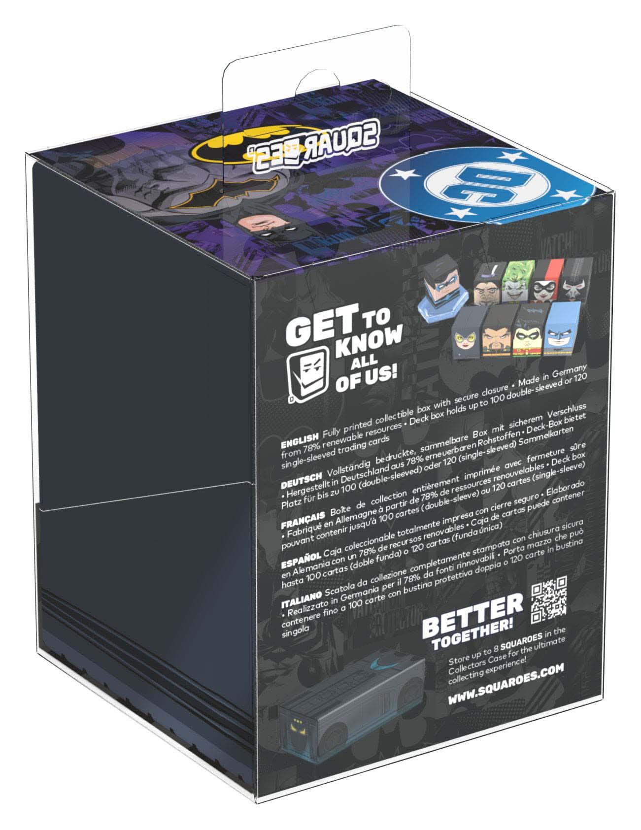 Sammelbare Box zur Aufbewahrung von TCG-Decks, Tabletop-Zubehör und/oder Sammlerstücken. Der Cat Woman Squaroe aus der Batman: Gotham City-Edition bietet als Deck-Box benutzt Platz für bis zu 100 Spielkarten in doppelter Schutzhülle. Squaroes werden aus 78% erneuerbaren Rohstoffen hergestellt und passen perfekt in das separat erhältliche Collectors Case.