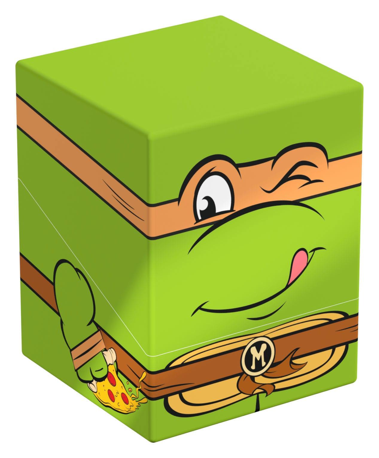 Collectible box for storing TCG decks, tabletop gaming accessories, and/or collectibles. The Donatello Squaroe from the Teenage Mutant Ninja Turtles edition holds up to 100 cards in double protective sleeves if used as a deck box. Squaroes are made from 78% renewable recources and fit perfectly into the separately available Collectors Case.