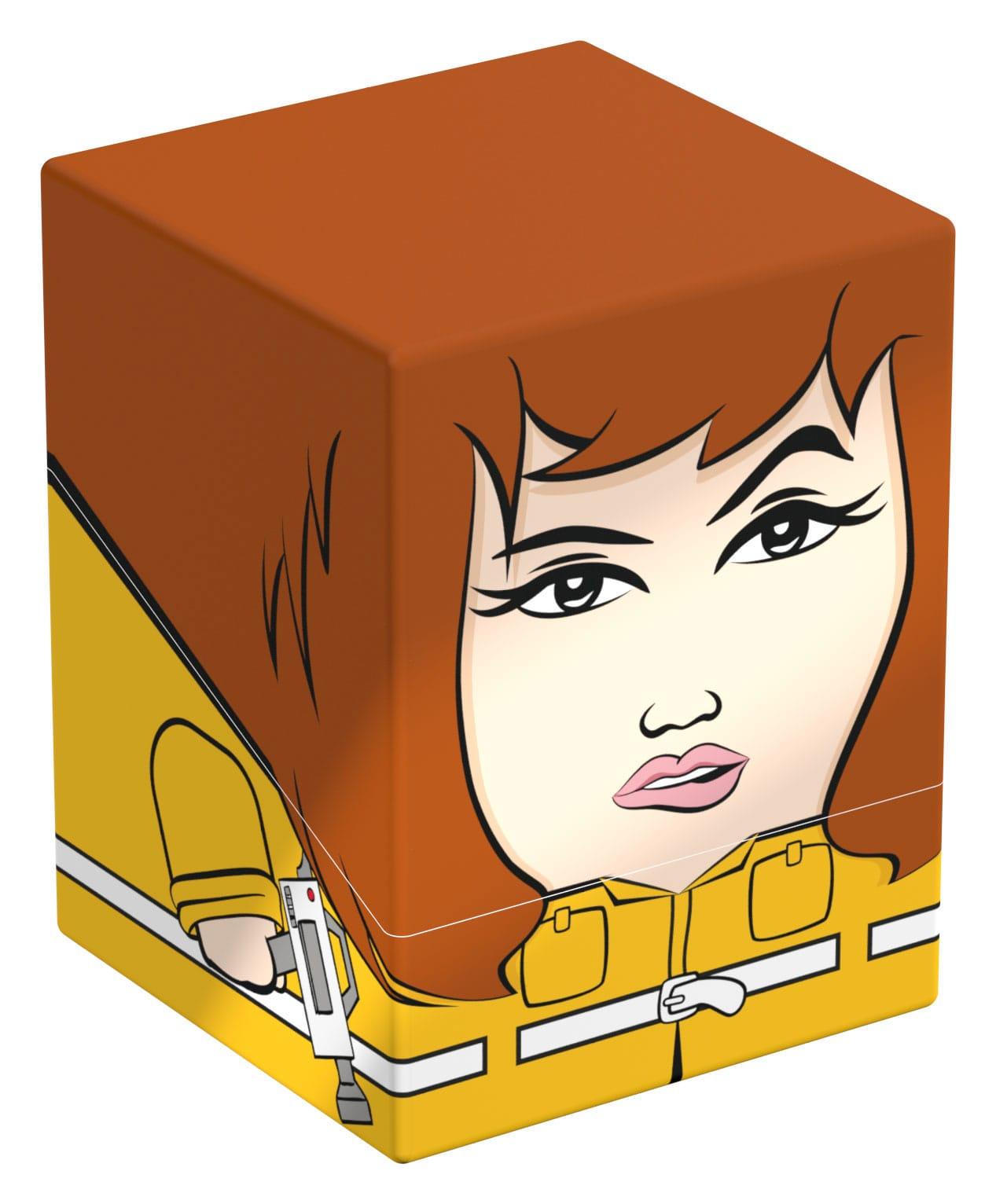 Collectible box for storing TCG decks, tabletop gaming accessories, and/or collectibles. The Donatello Squaroe from the Teenage Mutant Ninja Turtles edition holds up to 100 cards in double protective sleeves if used as a deck box. Squaroes are made from 78% renewable recources and fit perfectly into the separately available Collectors Case.