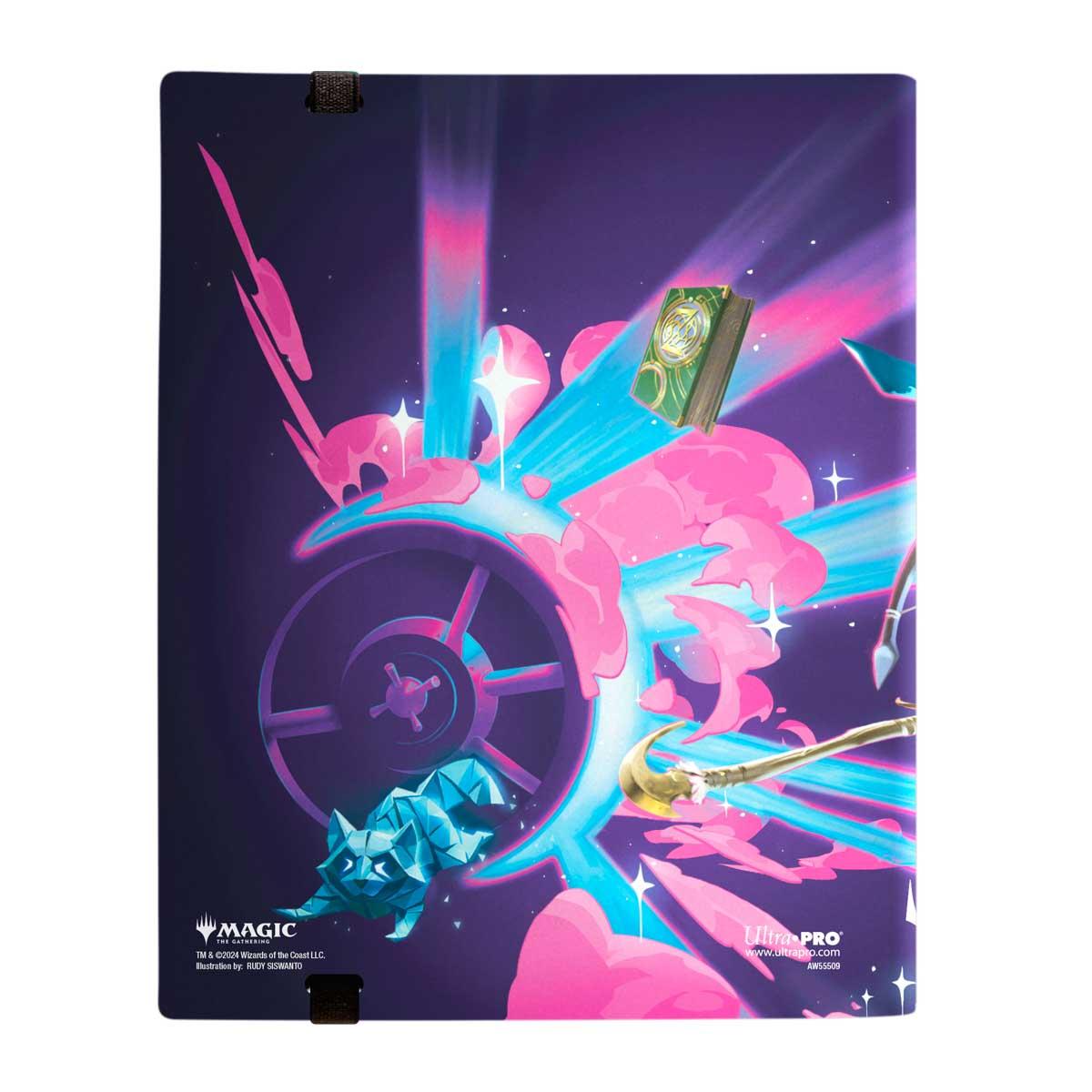 The PRO-Binder for Magic: The Gathering features a vibrant, full-art cover and hot pink webbed pages with matching elastic strap closure. Side-loading pockets and low-friction material help keep cards in place. Up to 360 cards can be stored safely in archival-safe, acid-free, non-PVC pages.