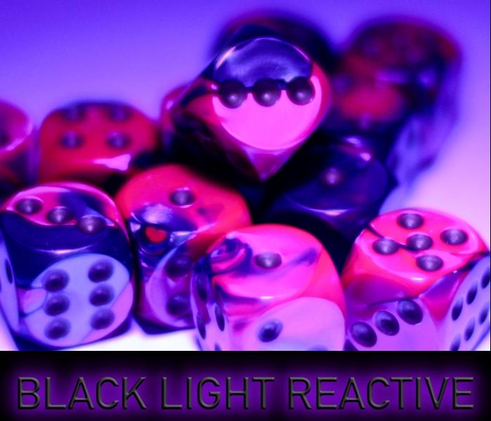 Each set contains 12 Gemini Purple-Teal 16mm d6 dice with gold pips (DG1649) in 02805 Display Case w/Lid and Foam Square This color is Black Light Reactive! It will react to a Black Light Flashlight.