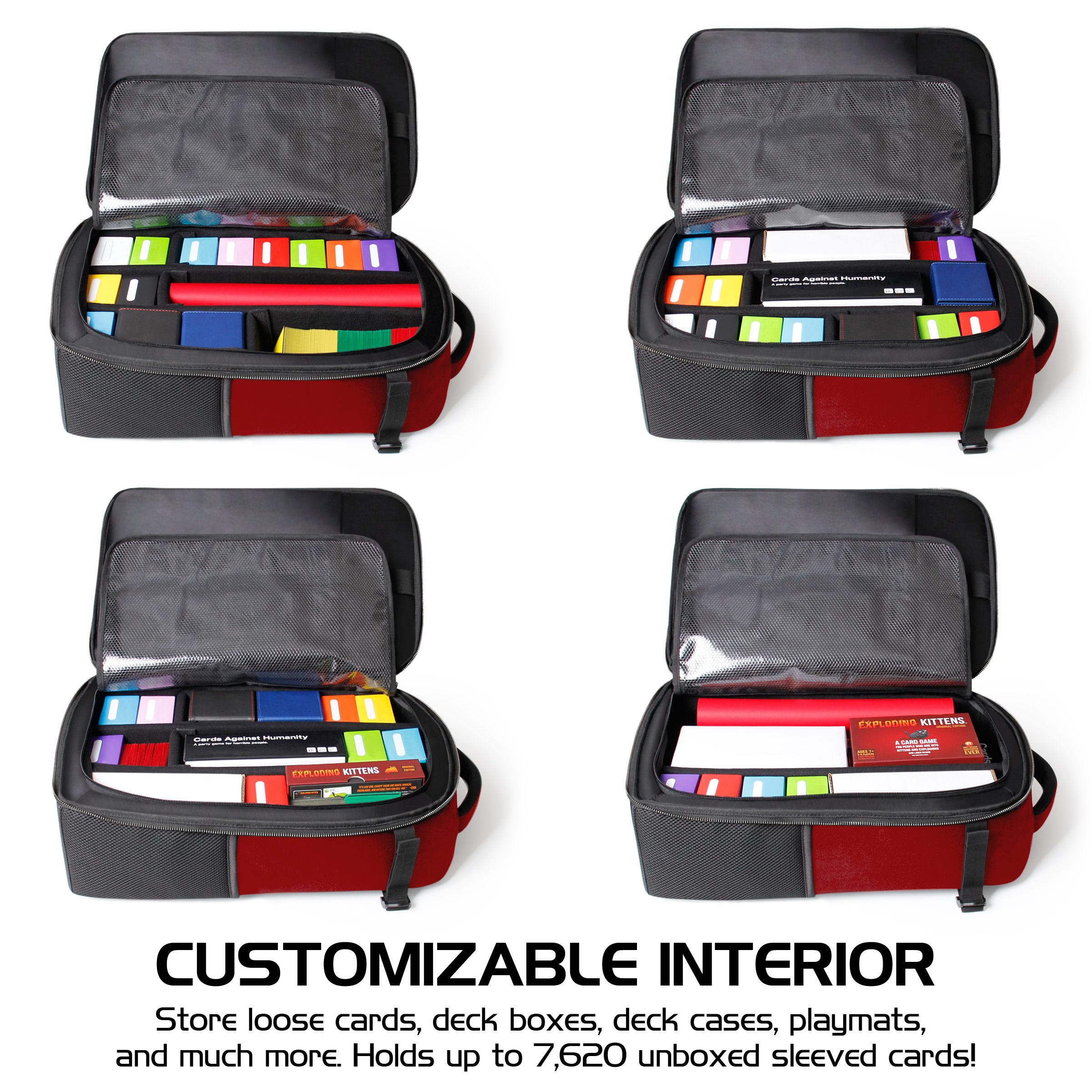 The MTG Card Backpack features a premium interior complete with reinforced dividers that can be organized to accommodate your gaming card collection and any larger accessories you have. This highly customizable interior is perfect for storing loose cards, sleeved cards, BCW boxes, deck boxes, and commander decks. The rugged design protects your cards and accessories from drops, scrapes, and more, and has a line of built-in padding making the ENHANCE Playing Card Holder a perfect storage and travel bag.
