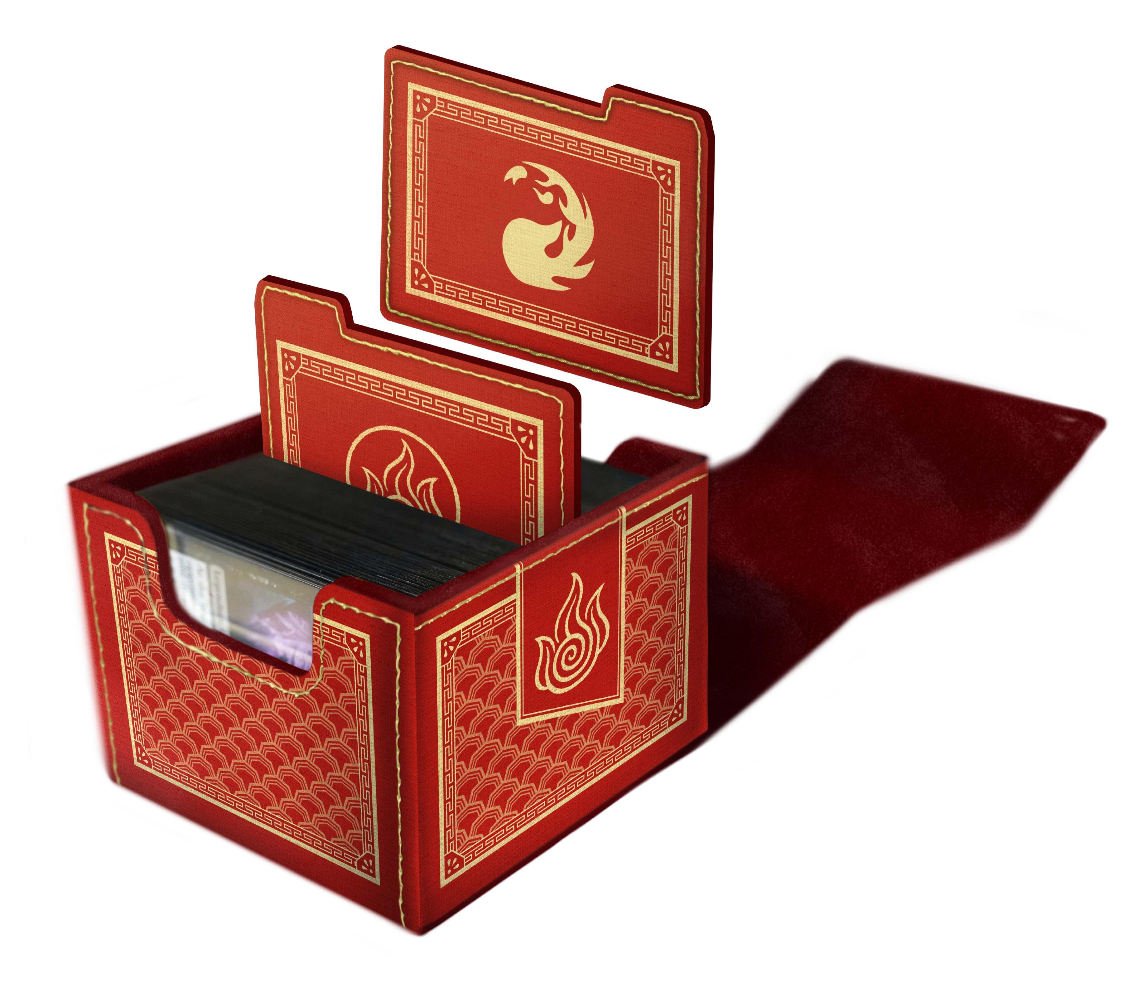 Inspired by the strength and elegance of Japanese armor, DOMARU, meaning chest armor or body wrap, is our series designed to provide your cherished collection with the best protection it deserves. May this DOMARU Box become a trusted companion as you enlist it into your gaming journey.Product Features:Magic the Gathering - Avatar: the Last Airbender Inspired Design. Featuring foiled designs inspired by Avatar's four elements, this DOMARU Box is the perfect way to showcase your love for the set.Spacious Storage: Whether you're a seasoned player or just starting out, this box offers ample space, accommodating over 130 double-sleeved cards or 100 triple-sleeved cards. Perfect for storing your deck, sideboard, or extra cards, the roomy interior ensures you're always prepared.Card Dividers: Each DOMARU Box includes two dividers with alternating top tabs, making it easy to organize and separate your cards efficiently.Strong Magnetic Closure: Your deck deserves the best protection. That's why the DOMARU Box is equipped with powerful magnets, ensuring a secure and reliable closure.