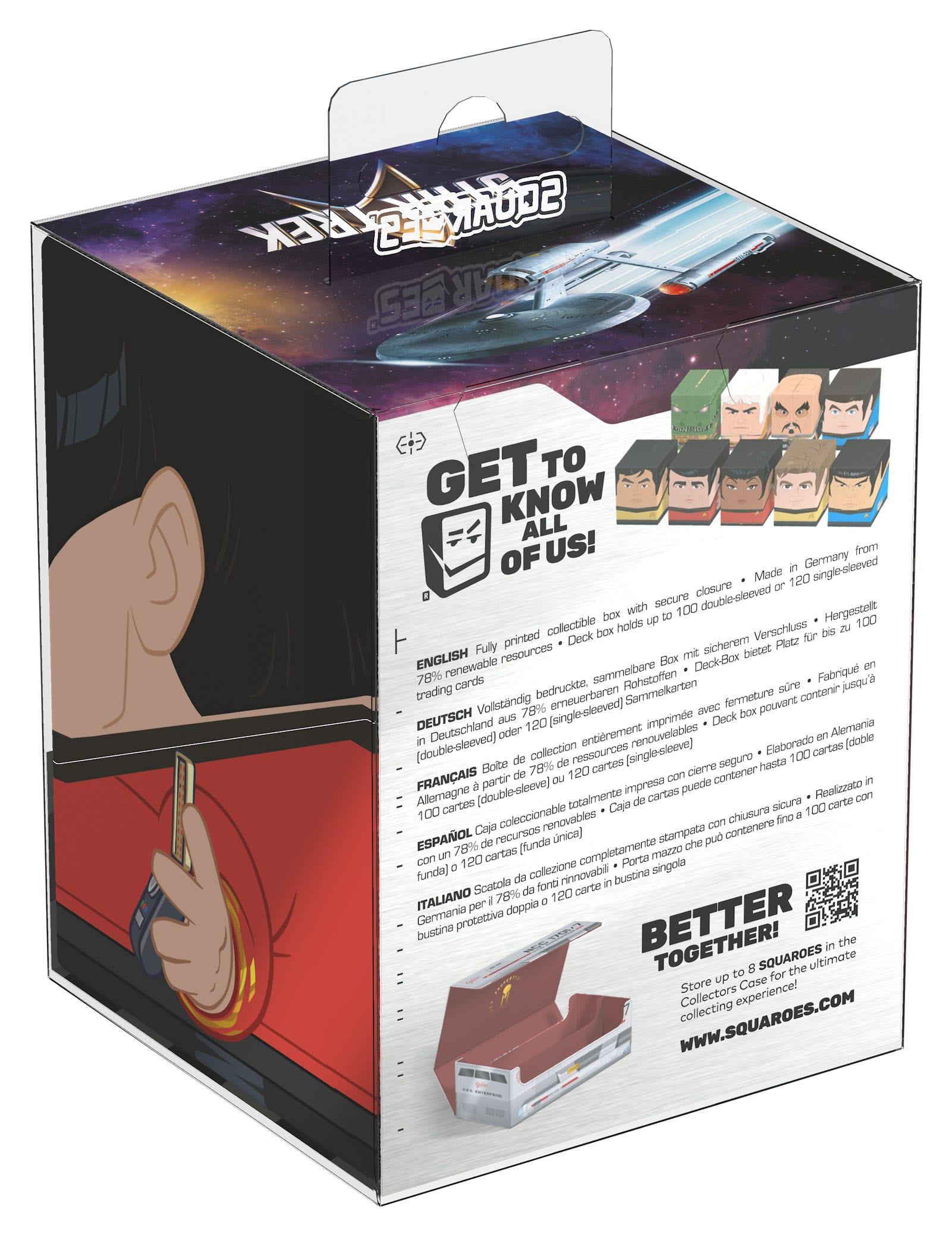 Sammelbare Box zur Aufbewahrung von TCG-Decks, Tabletop-Zubehör und/oder Sammlerstücken. Der Scotty Squaroe aus der Star Trek: The Original Series-Edition bietet als Deck-Box benutzt Platz für bis zu 100 Spielkarten in doppelter Schutzhülle. Squaroes werden aus 78% erneuerbaren Rohstoffen hergestellt und passen perfekt in das separat erhältliche Collectors Case.