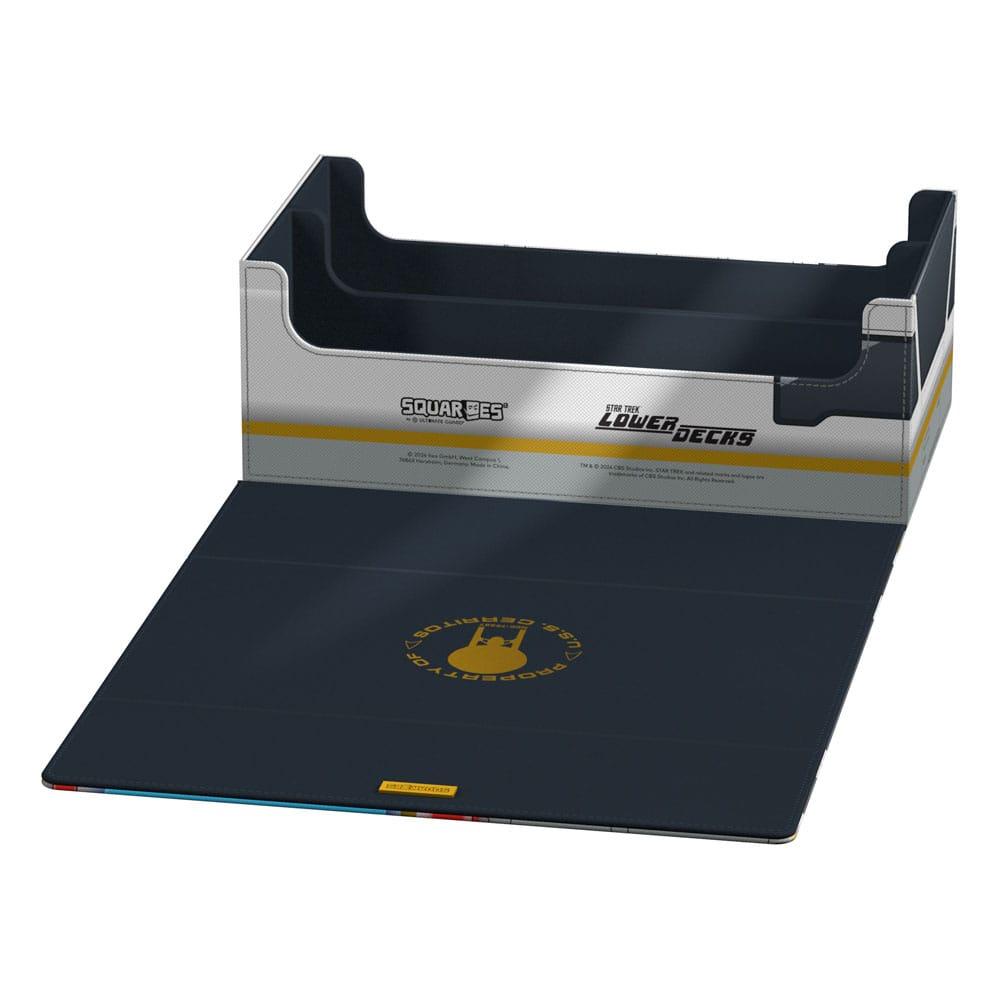 Die perfekte Aufbewahrungsbox für mehrere TCG-Decks, Sammelkarten - und natürlich deine Squaroes-Sammlung! Das Collectors Case ""Shuttlecraft Yosemite"" aus der Star Trek: Lower Decks-Edition ist das perfekte Zuhause für bis zu acht Squaroes-Boxen, einzelne Spielkarten (bis zu 1000 in doppelter Schutzhülle) oder Gaming-Zubehör aller Art. Das vollfarbig bedruckte, widerstandsfähige Xenoskin-Material sowie der starke Magnetverschluss mit ZnapClaw-Mechanismus sorgen dafür, dass alle Inhalte sicher verwahrt sind.