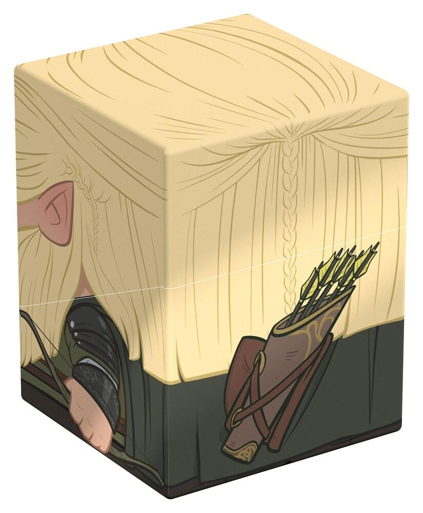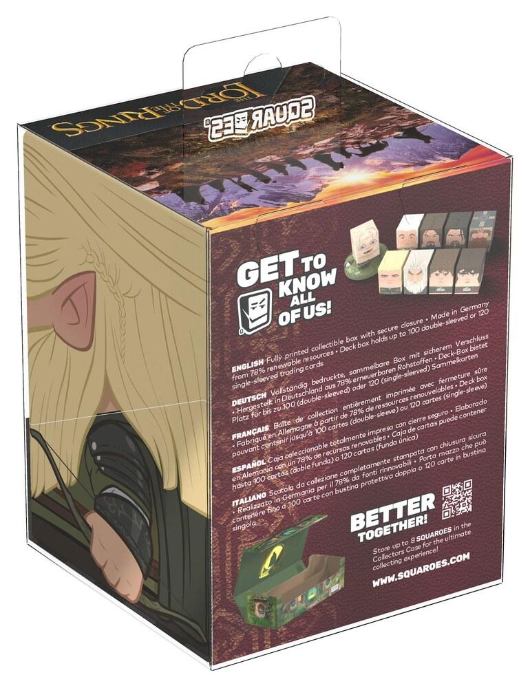 Collectible box for storing TCG decks, tabletop gaming accessories, and/or collectibles. The Legolas Squaroe from the The Lord of the Rings edition holds up to 100 cards in double protective sleeves if used as a deck box. Squaroes are made from 78% renewable resources and fit perfectly into the separately available Collectors Case.