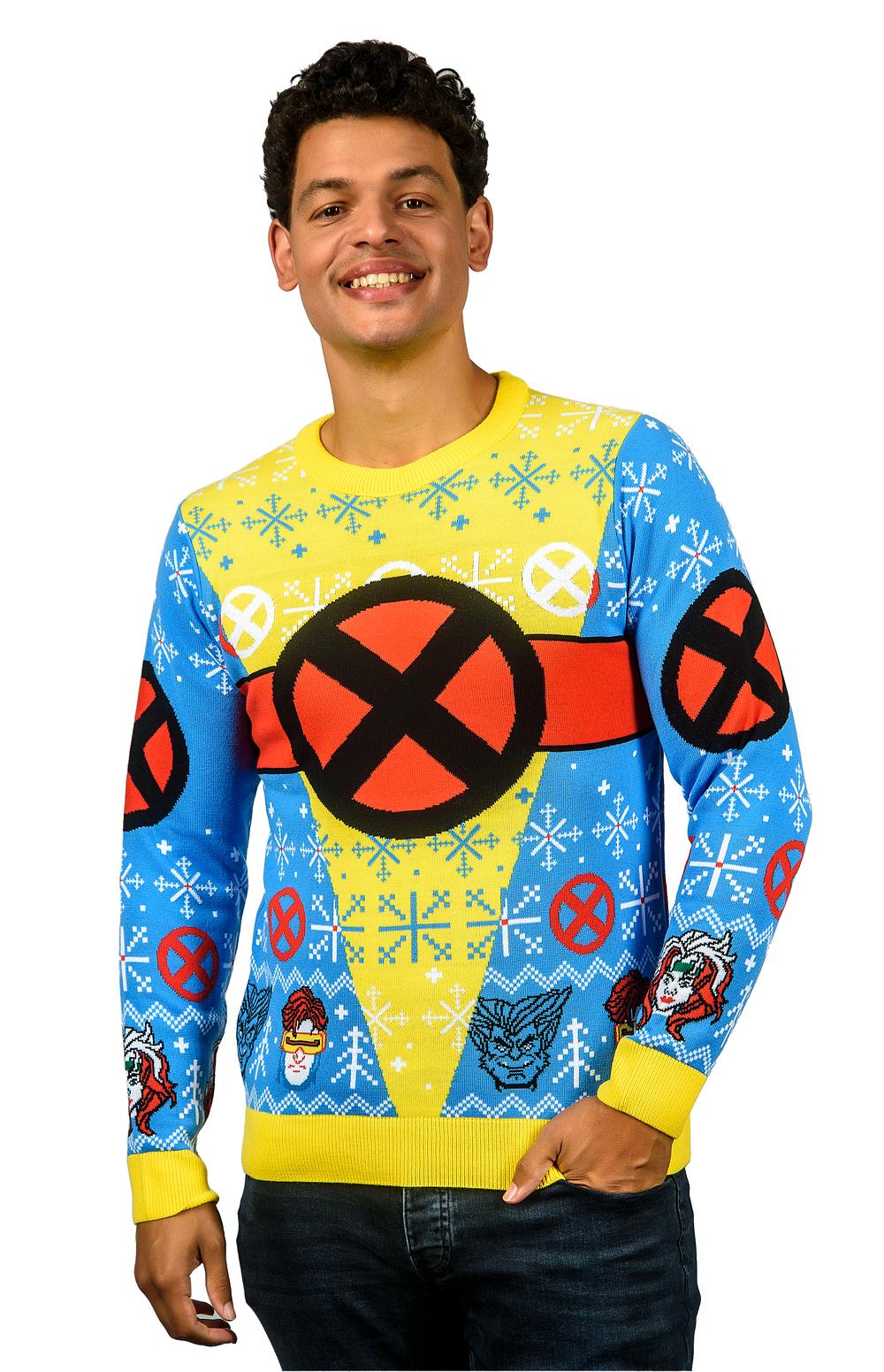 "Machen Sie die Feiertage mit dem X-Men: Weihnachts-Pullover besonders fröhlich!Vergessen Sie den Weihnachtsmann-Anzug - wenn Sie die Feiertage in diesem Jahr wirklich rocken wollen, warum nicht im Weihnachts-Pullover der X-Men stylen? Sie werden nicht nur der Neid all Ihrer Freunde sein, sondern können auch die mutantischen Superkräfte der X-Men selbst kanalisieren! Dieses Vintage-90er-Jahre-X-Men-Uniform ist der perfekte Weg, um in dieser Feiertagssaison aus der Menge herauszustechen. Das gelb-blaue Design verfügt auf der Vorder- und Rückseite über ein rotes X-Men-Logo und verleiht Ihnen einen klassischen Superhelden-Look von Kopf bis Fuß.- Zeigen Sie Ihren X-Men-Stolz mit dieser festlichen Mode-Aussage!- Halten Sie sich warm und sehen Sie cool aus mit der ikonischen X-Men-Uniform.- Stellen Sie sicher, dass Professor Xavier weiß, dass es Ihnen ernst ist, wenn es um Feiertagsstil geht."